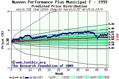 The following graph plots the year-to-date performance of the stock for 1993 compared to the probability calculated by a random walk model.