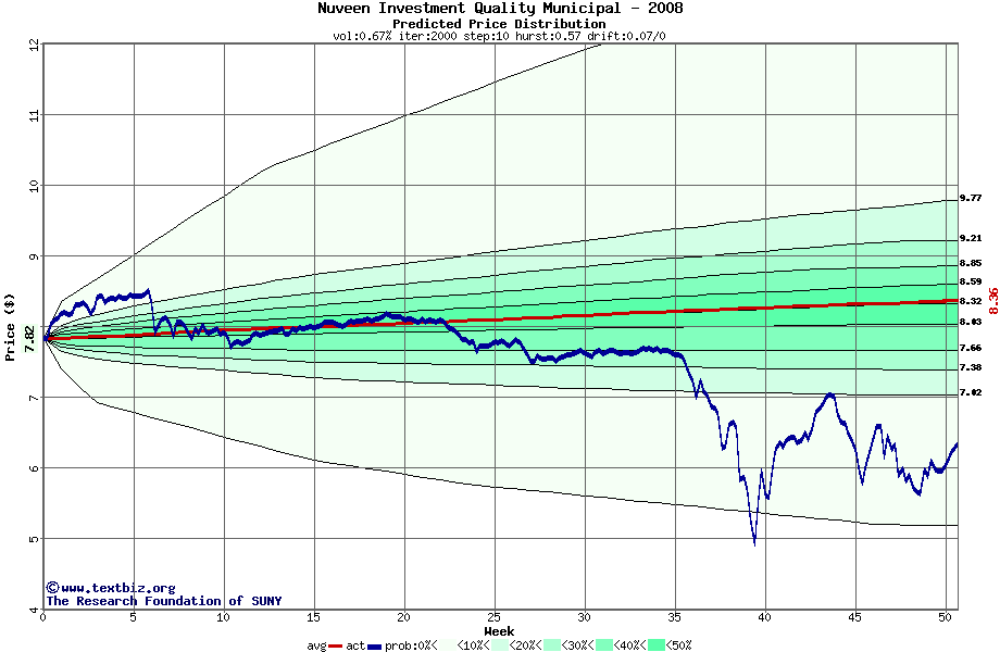 The following graph plots the year-to-date performance of the stock for 2008 compared to the probability calculated by a random walk model.