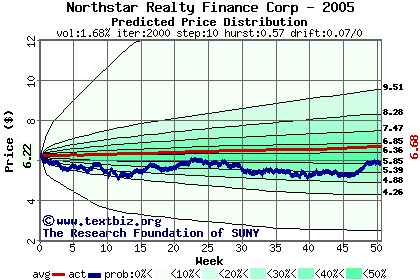 The following graph plots the year-to-date performance of the stock for 2005 compared to the probability calculated by a random walk model.