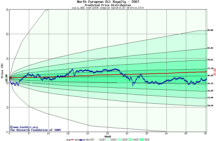The following graph plots the year-to-date performance of the stock for 2007 compared to the probability calculated by a random walk model.