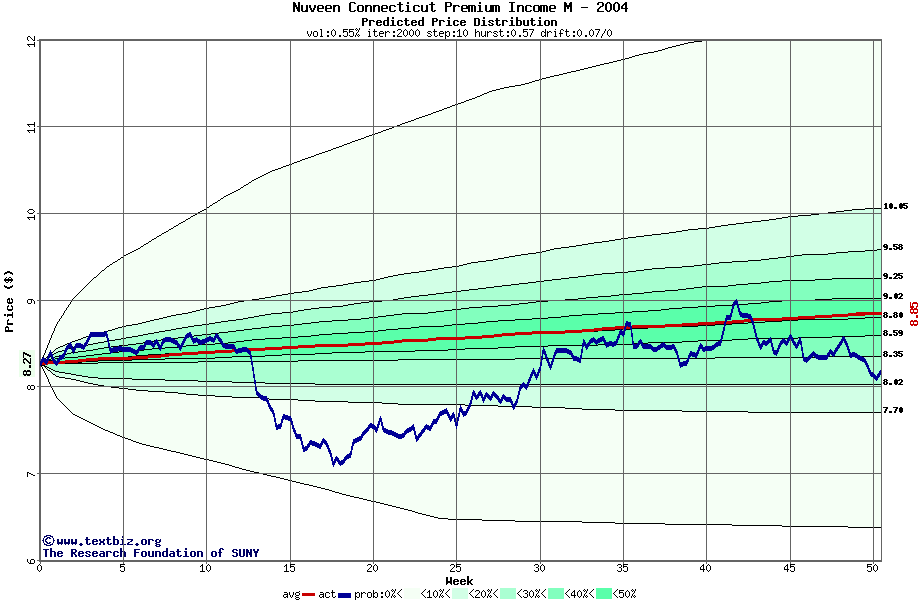 The following graph plots the year-to-date performance of the stock for 2004 compared to the probability calculated by a random walk model.