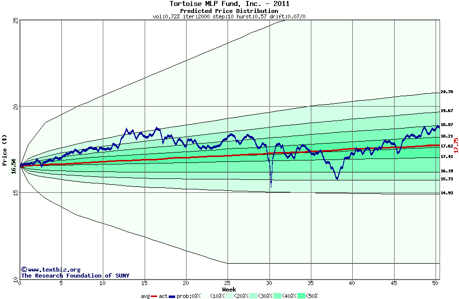 The following graph plots the year-to-date performance of the stock for 2011 compared to the probability calculated by a random walk model.