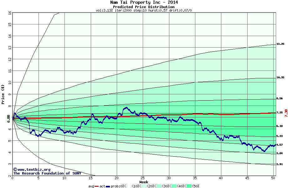 The following graph plots the year-to-date performance of the stock for 2014 compared to the probability calculated by a random walk model.