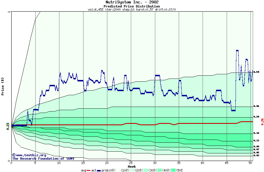 The following graph plots the year-to-date performance of the stock for 2002 compared to the probability calculated by a random walk model.