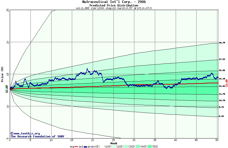 The following graph plots the year-to-date performance of the stock for 2006 compared to the probability calculated by a random walk model.
