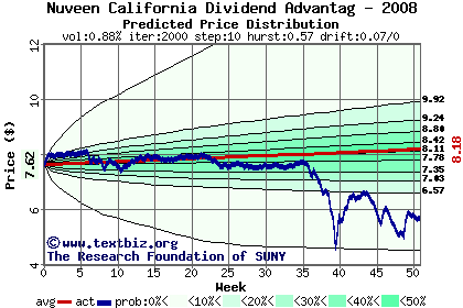 The following graph plots the year-to-date performance of the stock for 2008 compared to the probability calculated by a random walk model.