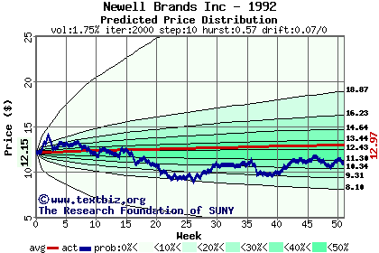 The following graph plots the year-to-date performance of the stock for 1992 compared to the probability calculated by a random walk model.
