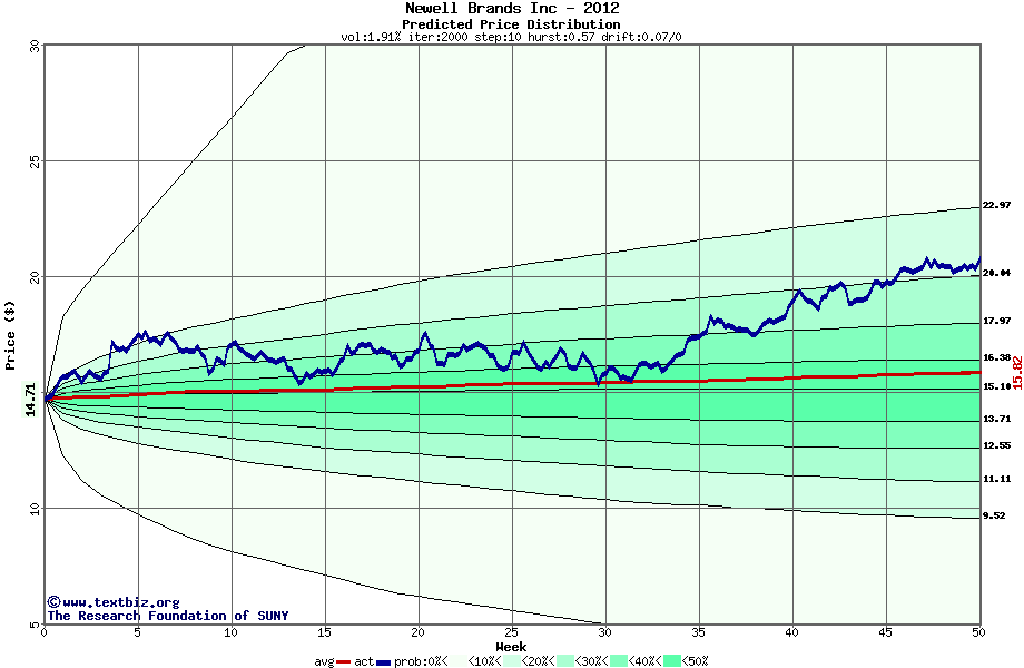 The following graph plots the year-to-date performance of the stock for 2012 compared to the probability calculated by a random walk model.