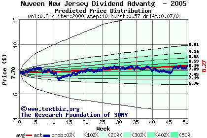 The following graph plots the year-to-date performance of the stock for 2005 compared to the probability calculated by a random walk model.