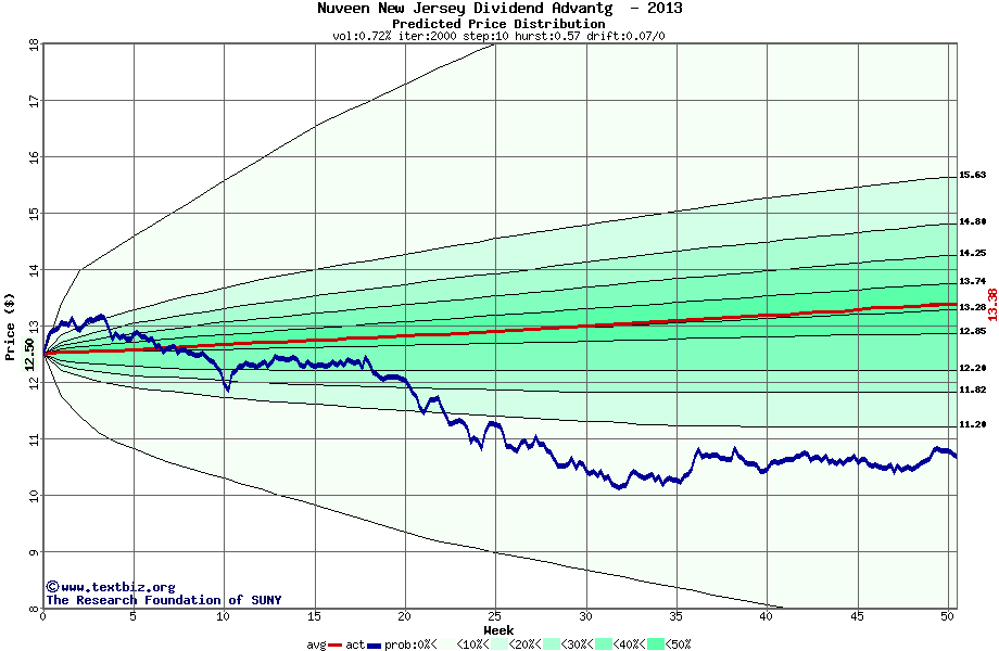 The following graph plots the year-to-date performance of the stock for 2013 compared to the probability calculated by a random walk model.