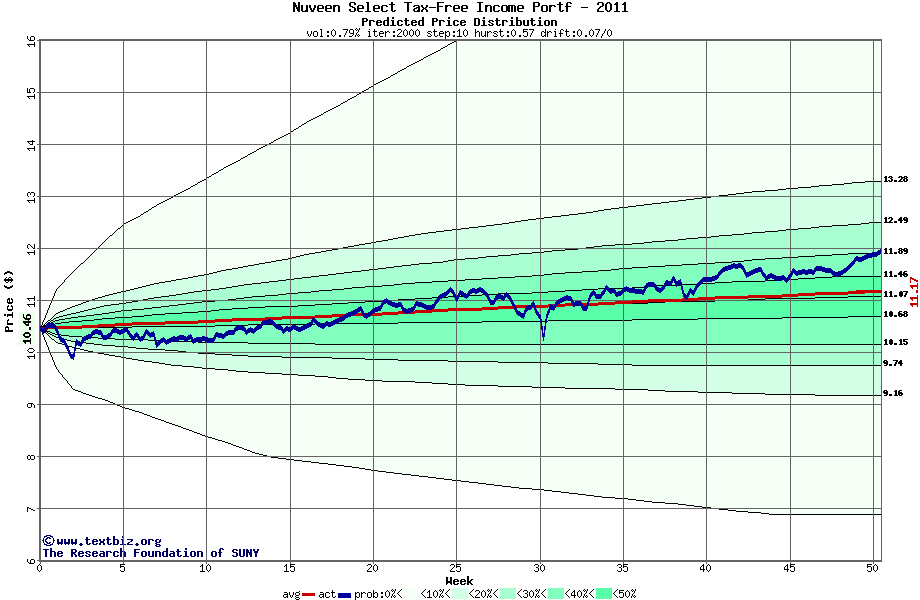 The following graph plots the year-to-date performance of the stock for 2011 compared to the probability calculated by a random walk model.