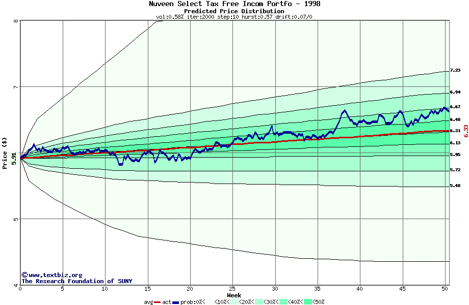 The following graph plots the year-to-date performance of the stock for 1998 compared to the probability calculated by a random walk model.