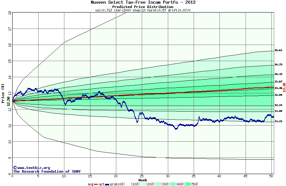 The following graph plots the year-to-date performance of the stock for 2013 compared to the probability calculated by a random walk model.