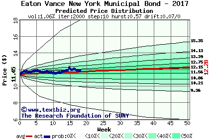 The high to date and low to date prices of the stock plotted against a random walk model for 2017 (what's this?).
