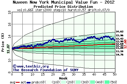 The high to date and low to date prices of the stock plotted against a random walk model for 2012 (what's this?).
