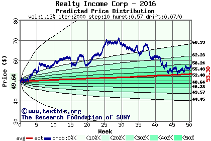 The following graph plots the year-to-date performance of the stock for 2016 compared to the probability calculated by a random walk model.
