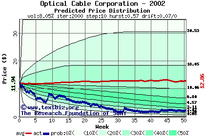 The following graph plots the year-to-date performance of the stock for 2002 compared to the probability calculated by a random walk model.