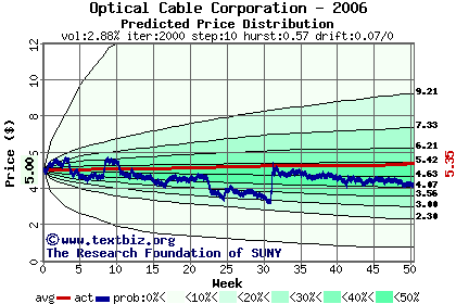 The following graph plots the year-to-date performance of the stock for 2006 compared to the probability calculated by a random walk model.