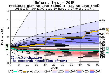 The following graph plots the year-to-date performance of the stock for 2015 compared to the probability calculated by a random walk model.