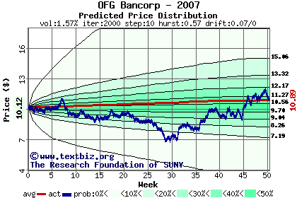 The following graph plots the year-to-date performance of the stock for 2007 compared to the probability calculated by a random walk model.