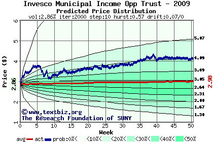 The high to date and low to date prices of the stock plotted against a random walk model for 2009 (what's this?).
