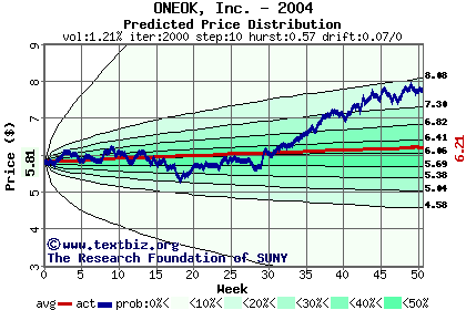 The following graph plots the year-to-date performance of the stock for 2004 compared to the probability calculated by a random walk model.