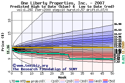 The following graph plots the year-to-date performance of the stock for 2007 compared to the probability calculated by a random walk model.