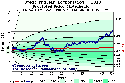 The following graph plots the year-to-date performance of the stock for 2010 compared to the probability calculated by a random walk model.