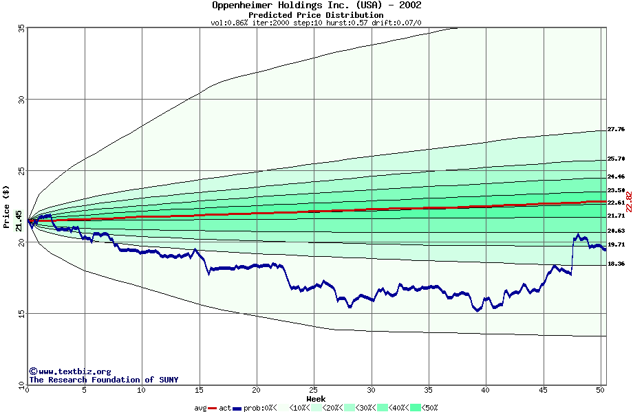 The following graph plots the year-to-date performance of the stock for 2002 compared to the probability calculated by a random walk model.