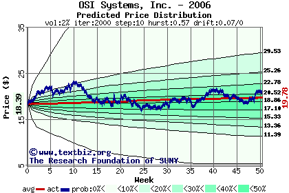 The following graph plots the year-to-date performance of the stock for 2006 compared to the probability calculated by a random walk model.