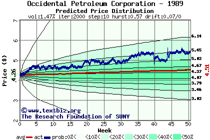 The following graph plots the year-to-date performance of the stock for 1989 compared to the probability calculated by a random walk model.