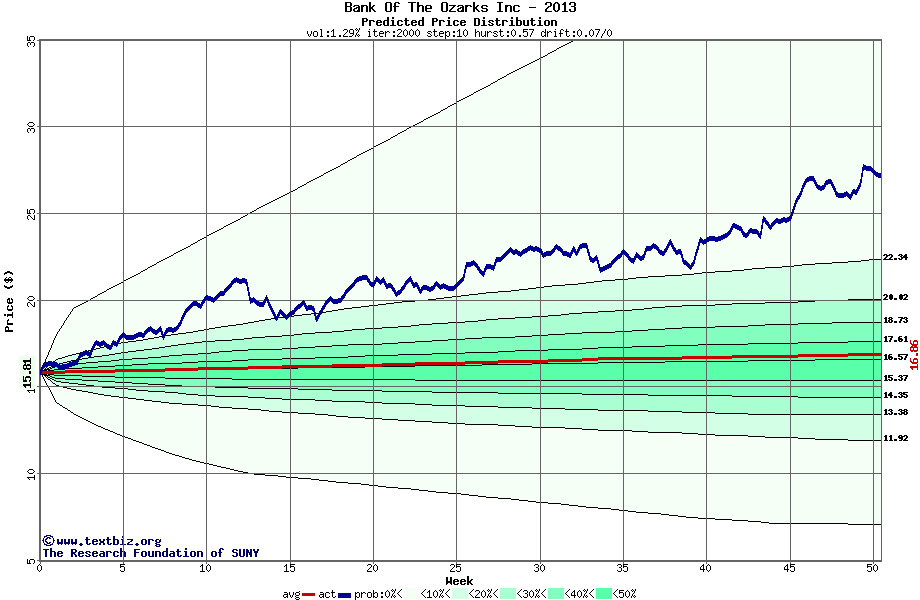The following graph plots the year-to-date performance of the stock for 2013 compared to the probability calculated by a random walk model.