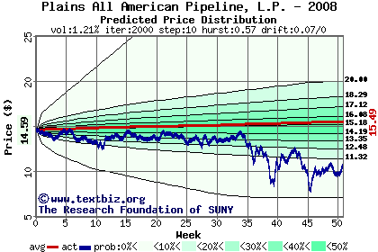The following graph plots the year-to-date performance of the stock for 2008 compared to the probability calculated by a random walk model.
