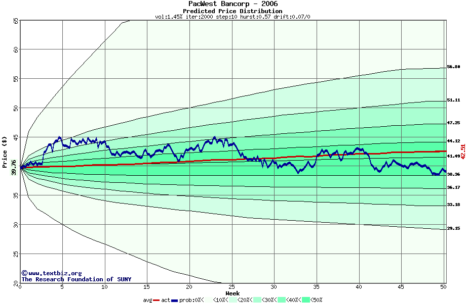The following graph plots the year-to-date performance of the stock for 2006 compared to the probability calculated by a random walk model.
