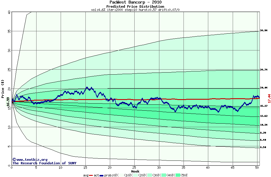The following graph plots the year-to-date performance of the stock for 2010 compared to the probability calculated by a random walk model.