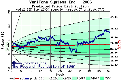 The following graph plots the year-to-date performance of the stock for 2006 compared to the probability calculated by a random walk model.