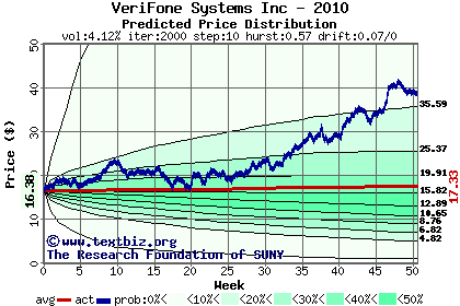 The following graph plots the year-to-date performance of the stock for 2010 compared to the probability calculated by a random walk model.