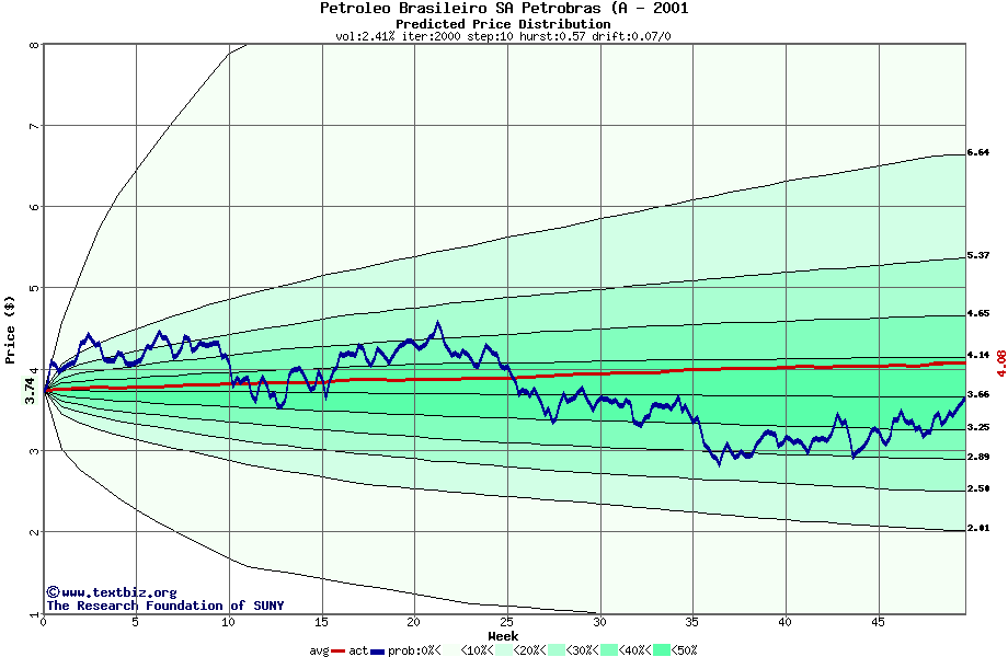 The following graph plots the year-to-date performance of the stock for 2001 compared to the probability calculated by a random walk model.