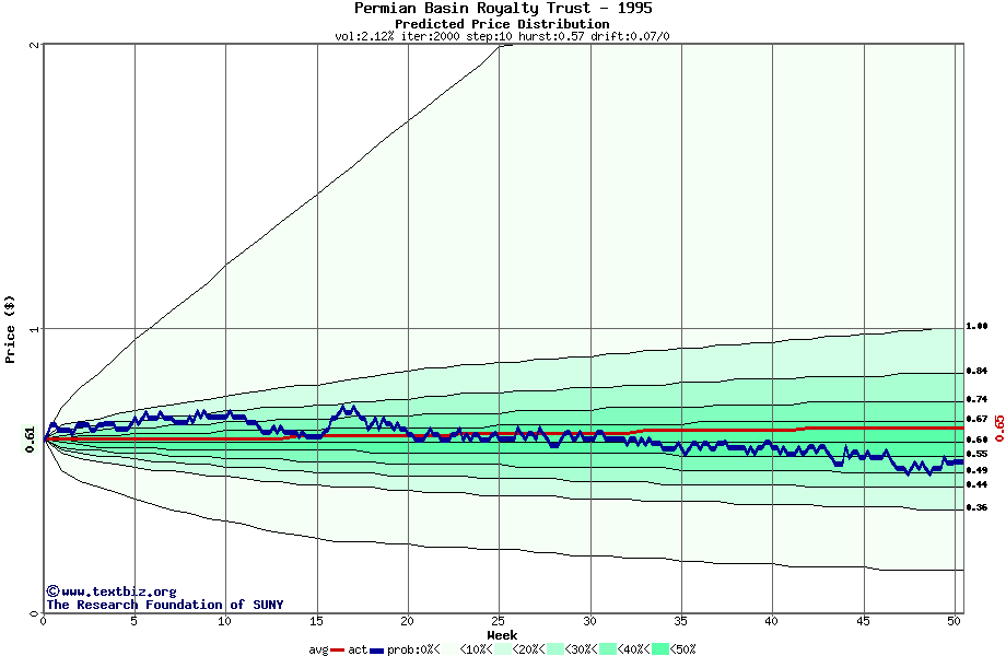 The following graph plots the year-to-date performance of the stock for 1995 compared to the probability calculated by a random walk model.