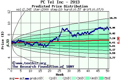 The following graph plots the year-to-date performance of the stock for 2013 compared to the probability calculated by a random walk model.
