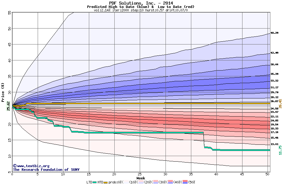 The following graph plots the year-to-date performance of the stock for 2014 compared to the probability calculated by a random walk model.