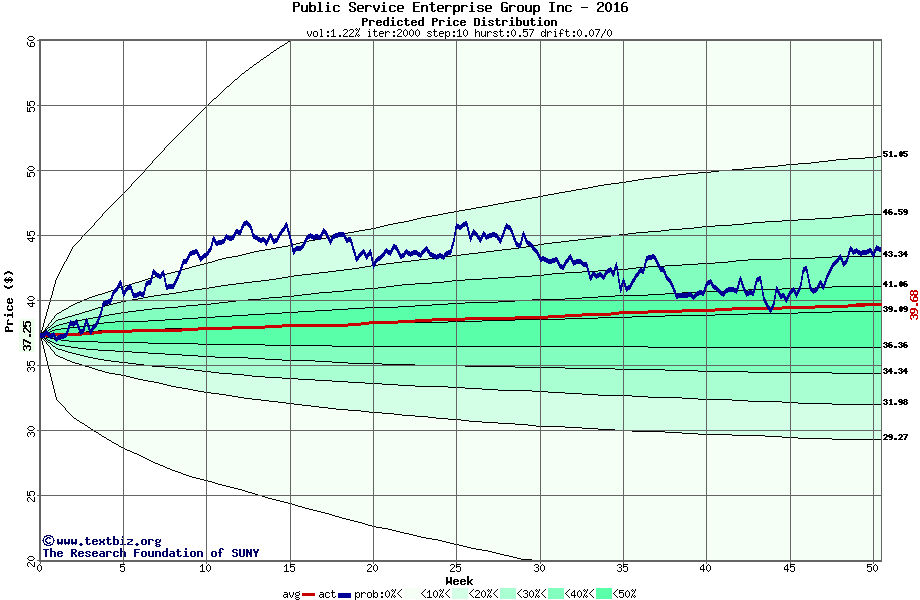 The following graph plots the year-to-date performance of the stock for 2016 compared to the probability calculated by a random walk model.