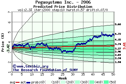 The following graph plots the year-to-date performance of the stock for 2006 compared to the probability calculated by a random walk model.