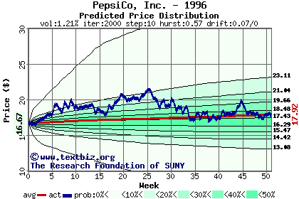 The following graph plots the year-to-date performance of the stock for 1996 compared to the probability calculated by a random walk model.