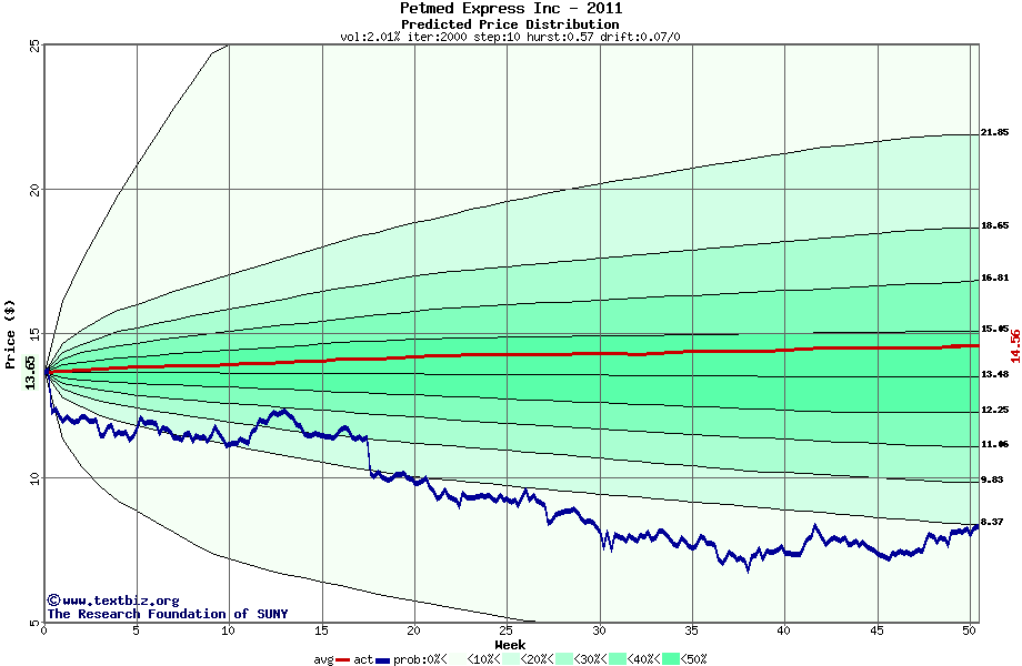 The following graph plots the year-to-date performance of the stock for 2011 compared to the probability calculated by a random walk model.