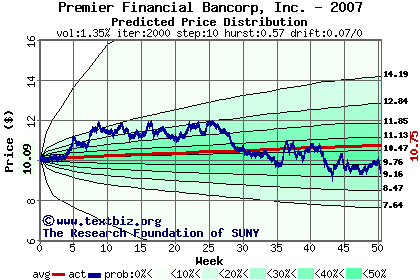 The following graph plots the year-to-date performance of the stock for 2007 compared to the probability calculated by a random walk model.