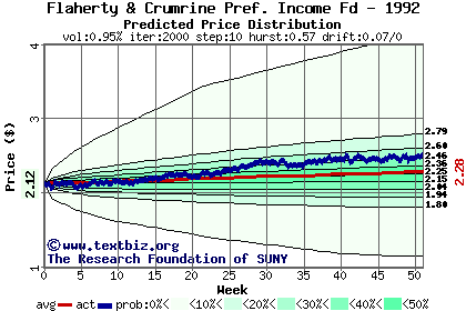The following graph plots the year-to-date performance of the stock for 1992 compared to the probability calculated by a random walk model.