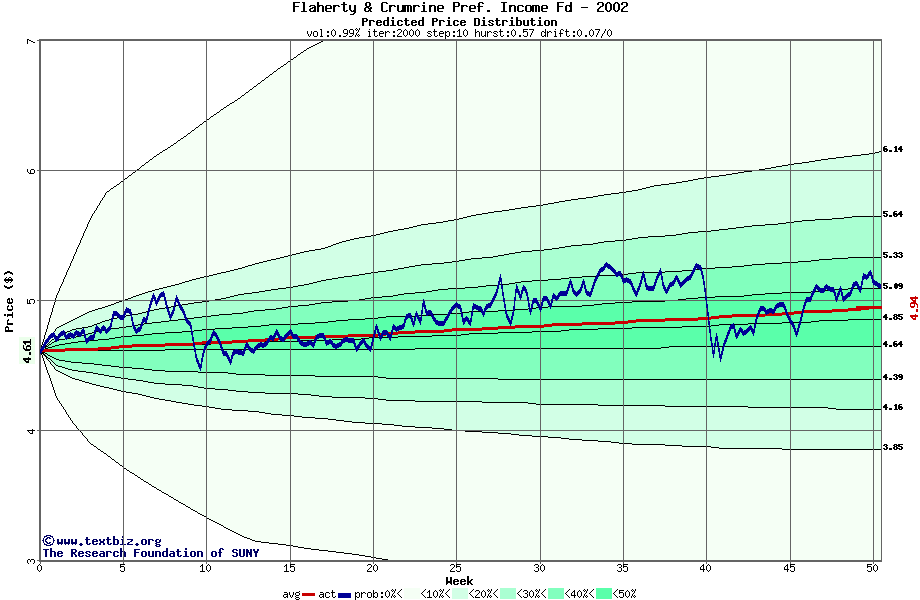 The following graph plots the year-to-date performance of the stock for 2002 compared to the probability calculated by a random walk model.