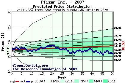 The following graph plots the year-to-date performance of the stock for 2007 compared to the probability calculated by a random walk model.