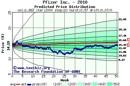 The following graph plots the year-to-date performance of the stock for 2010 compared to the probability calculated by a random walk model.